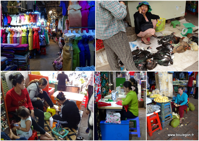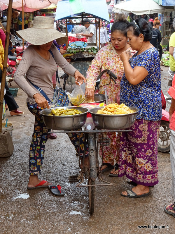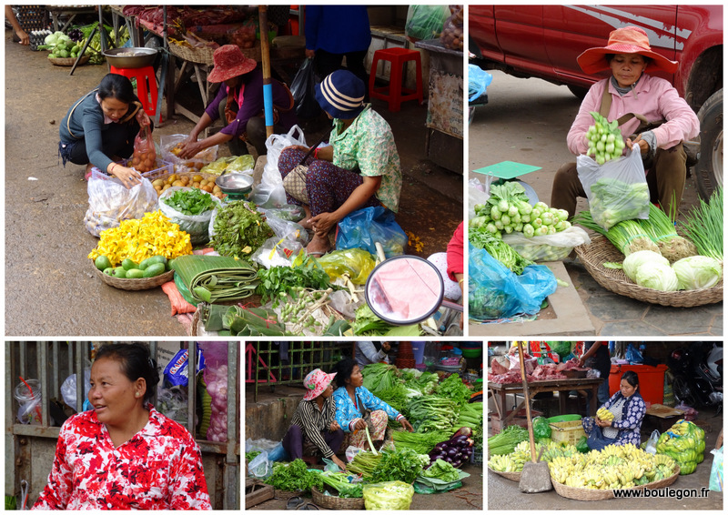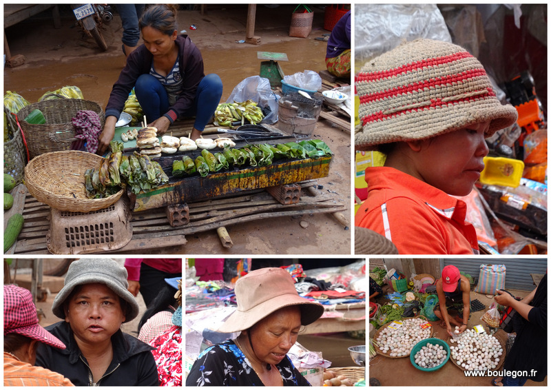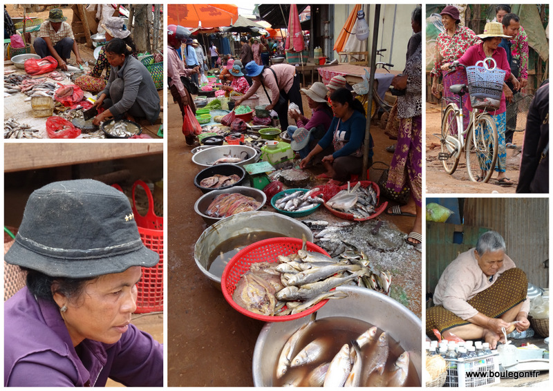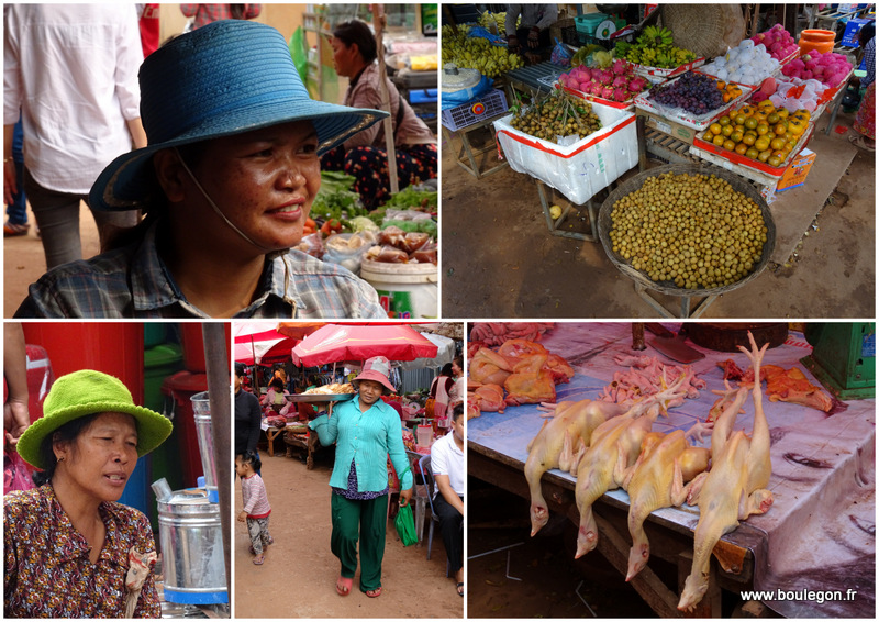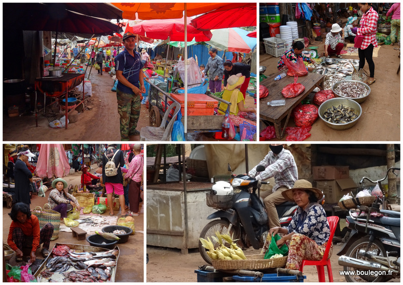 En route vers le village de Kampong Phluk, nous nous arrêtons avec plaisir dans un petit marché local. Ambiance