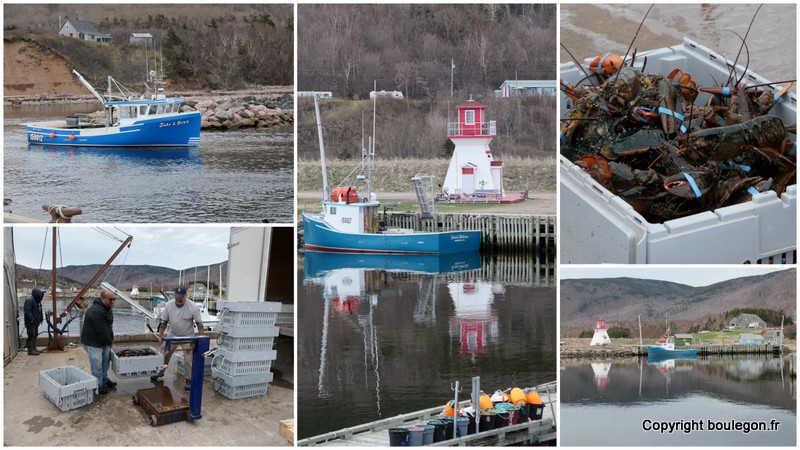 l'arrivée des bateaux de pêche et au déchargement des homards
