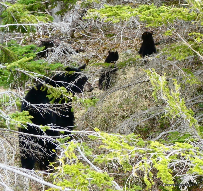 apercevons une ourse et ses 2 petits sur la route (nous sommes dans le