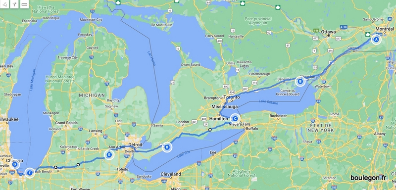 la direction de Détroit mais côté canadien. Nous longeons le lac Erié