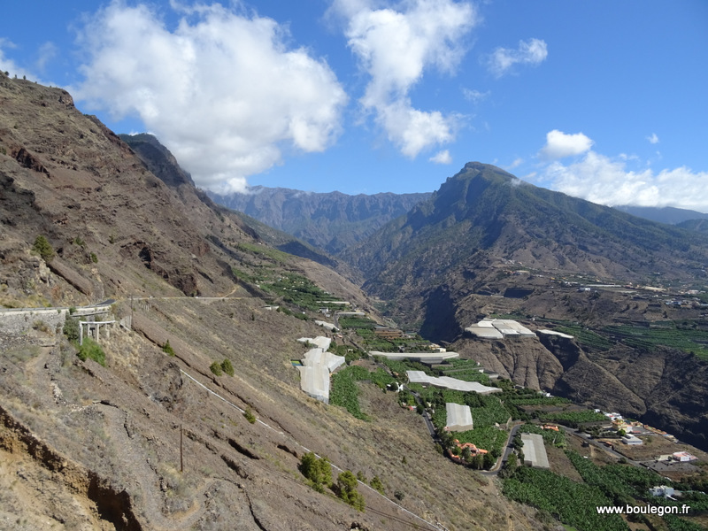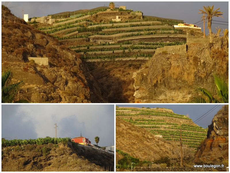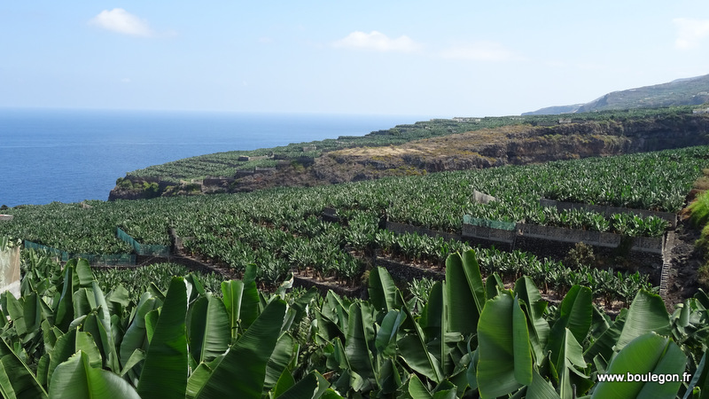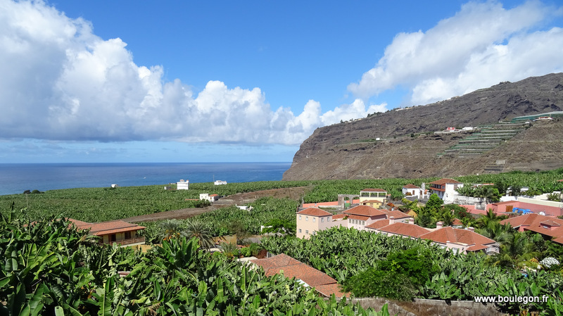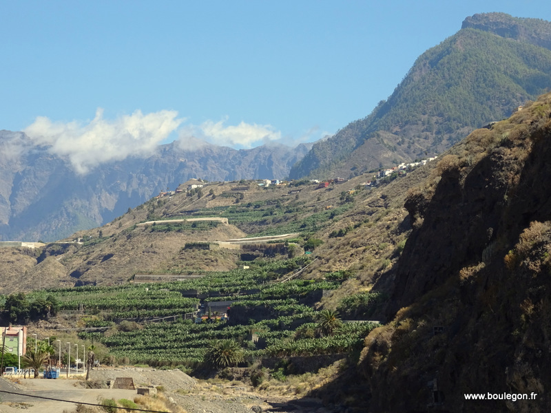 En route nous visitons le petit village de Tazacorte puis la sation balnéaire de Puerto de Naos entourée de champs de bananiers.