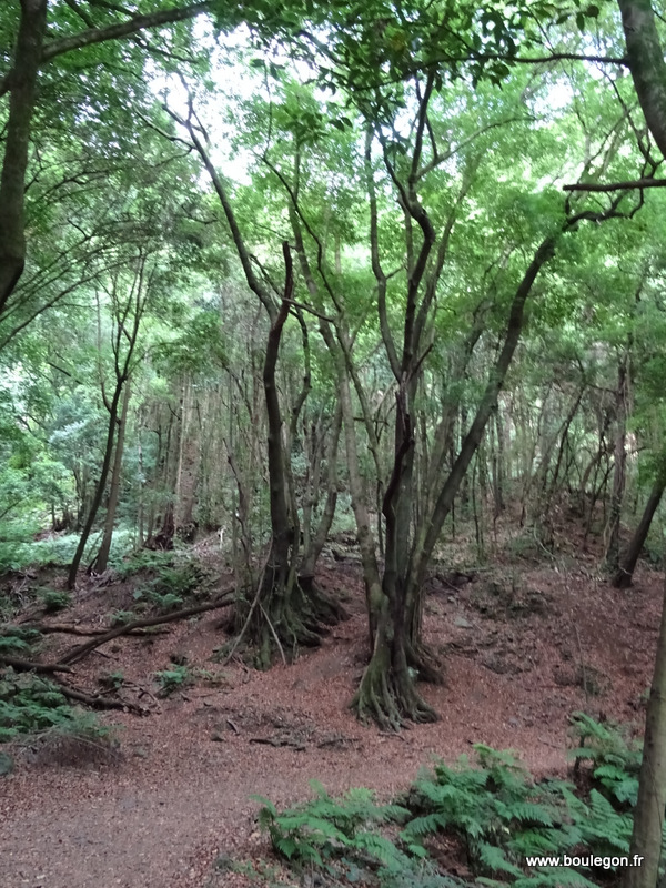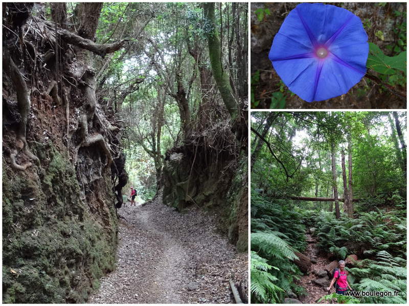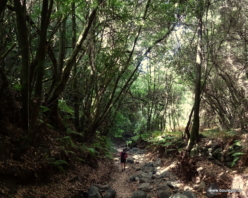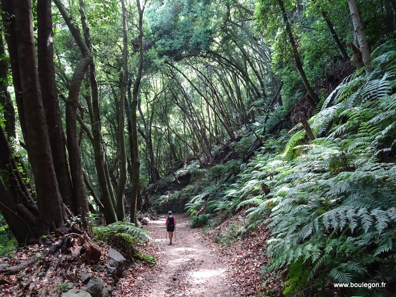 travers une forêt flamboyante de Laurisylve (lauriers géants), fougères
