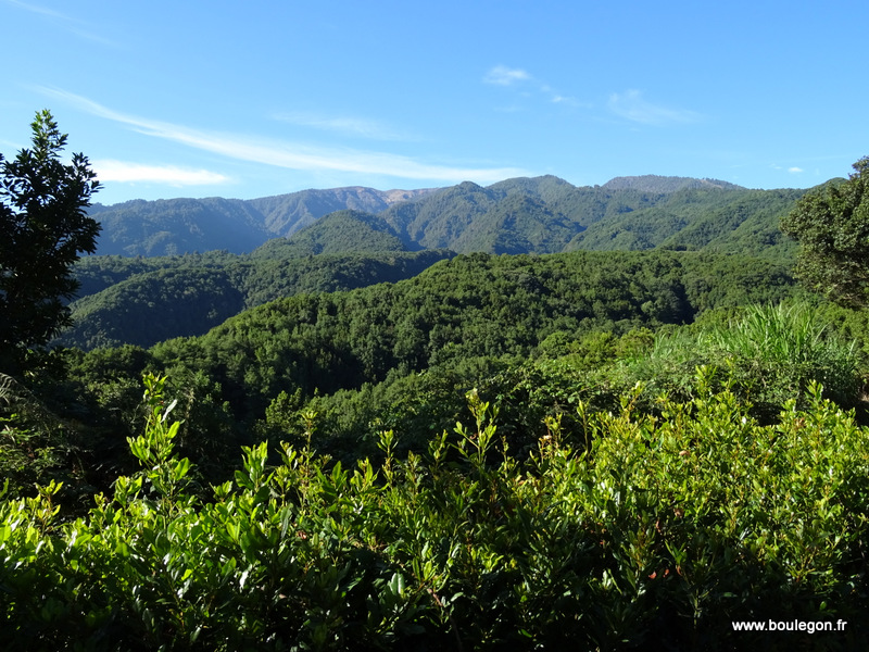 grimpons dans la forêt puis toute une série de volcans s'offrent à