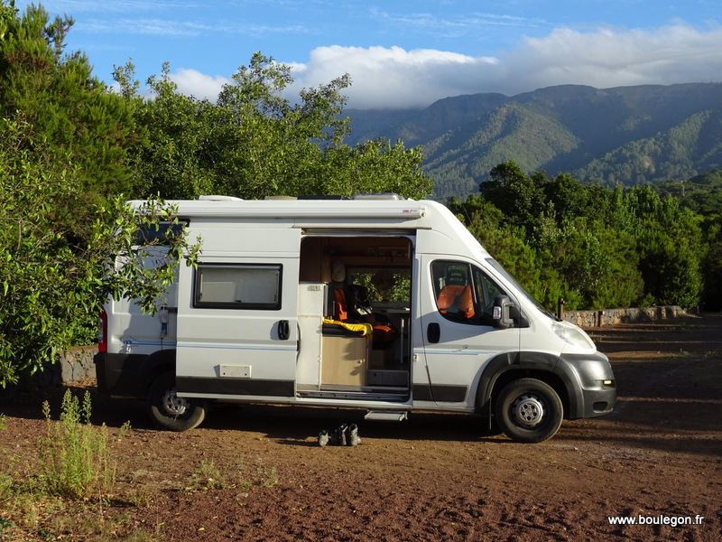 Nous posons notre fourgon sur l'aire de camping de San Antonio del