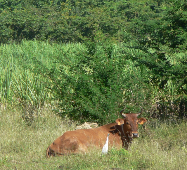 Ici les vaches ou les boeufs sont toujours accompagnés de leur "Pique-boeuf" qui se nourrit de leurs parasites