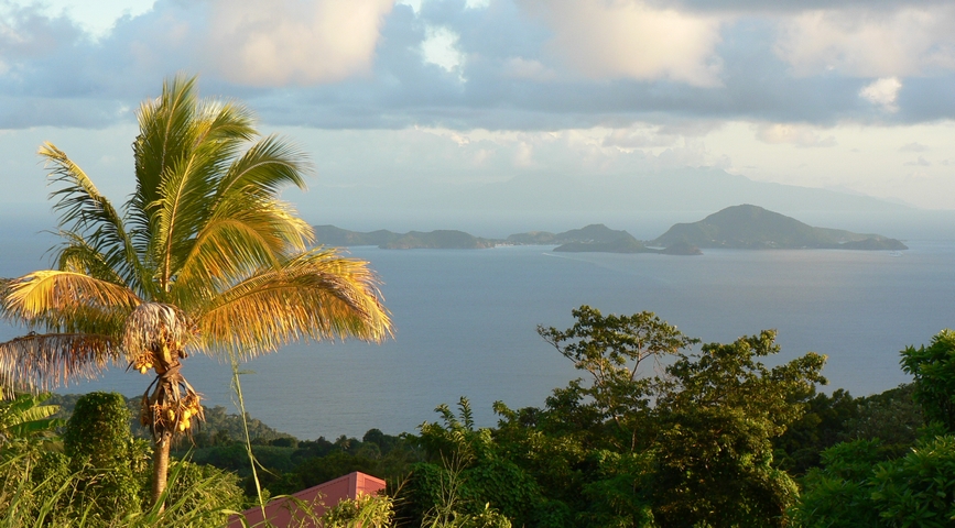Au premier plan l'archipel des Saintes, en fond, l'île de la Dominique