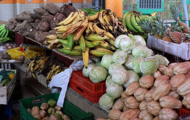 Visite de la région de Basse Terre. La ville en elle-même n'offre pas beaucoup d'intérêt. Le marché était peu fréquenté ce jour. En route nous pouvons observer des pélicans.