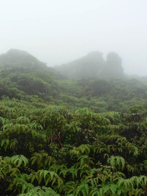 luxuriant mais toujours très vert. Le volcan est recouvert de fougères