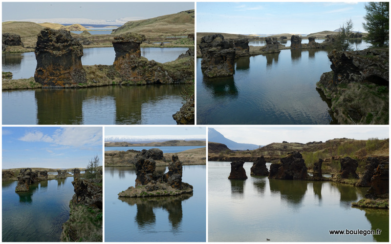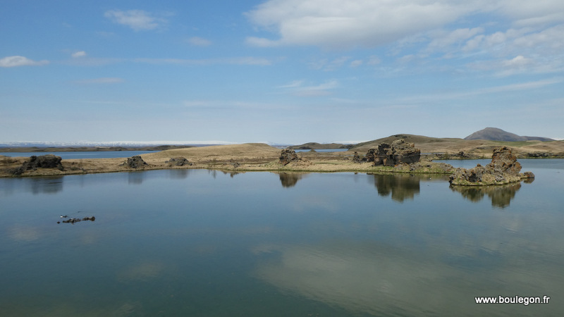 Nous quittons le lac Myvatn en le contournant par le sud. Arrêt sur la