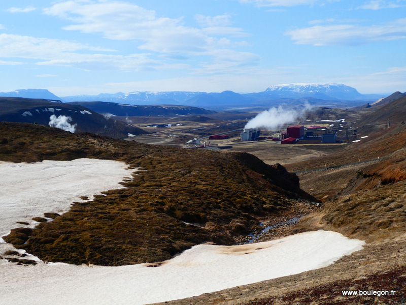 Nous allons tout d'abord sur le site du volcan Krafla au pied duquel est construite une centrale électrique géothermique.
