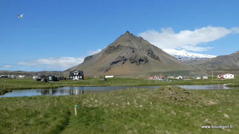 Nous nous posons dans le petit village d'Arnarstapi. Son petit port est