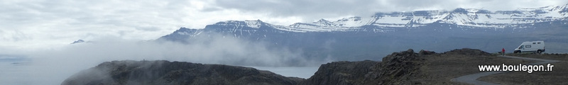 Nous remontons le long des fjords de l'est. Paysages très sauvages et plutôt austères mais magnifiques, comme d'habitude.