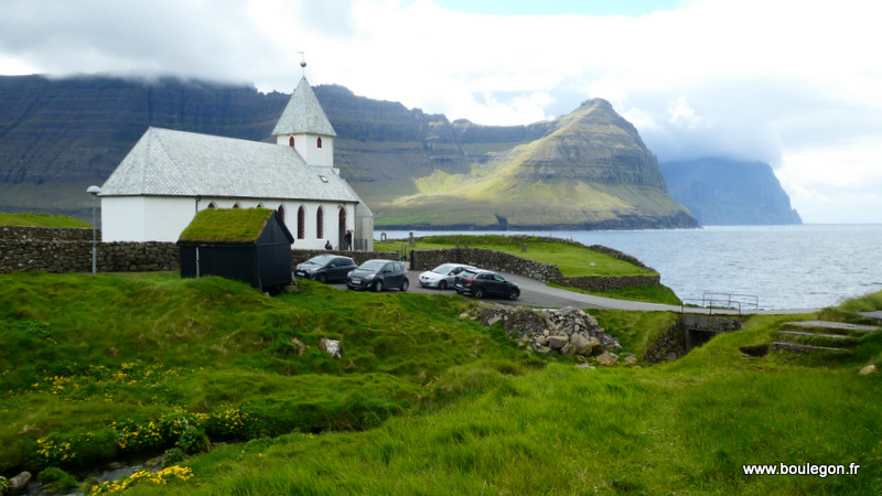 la belle vallée de Saksun et sa petite église perdue au bout du monde.