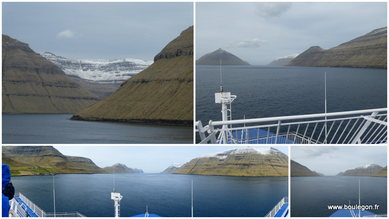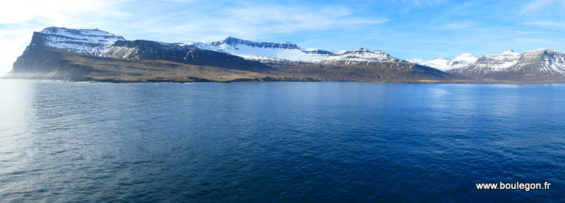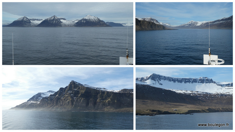 Nous repartons en début d'après-midi, direction l'Islande. Nous traversons un fjord pendant près de deux heures. Un régal.