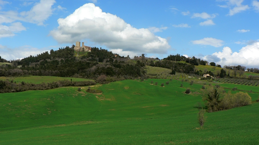 à chaque tournant une ferme ou un palais perchés sur une colline. Un
