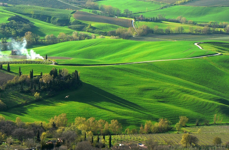 Toscane. Peu de cyprés et de vignes mais des collines couvertes de
