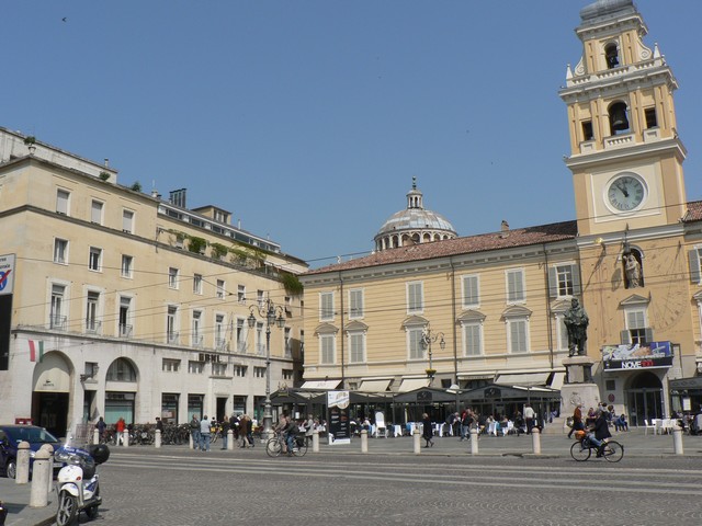 Nous nous arrêtons ensuite à Parme que nous visitons à vélo. La ville