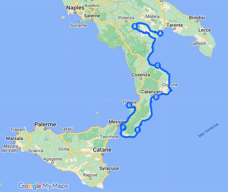 ![]() ![]() ![]() ![]() En retournant vers le bord de mer, nous passons à Craco, un village complètement détruit suite à une sur-urbanisation. Le sous-sol n'a pas aimé ! ![]() ![]() ![]() Nous entrons ensuite en Calabre et terminons le tour de la pointe de la botte en suivant la côte ionnienne. Cette partie n'est pas enthousiasmante. En effet la côte est plate, l'environnement sale, les villes traversées en très mauvais état. ![]() Crotone et ses environs ![]() Nous retrouvons enfin une jolie côte passée la pointe (Reggio di Calabria, détroit de Messine, mer tyrrhénienne). ![]() L'Etna et la Sicile apparaissent. Reggio de Calabria est plutôt une ville agréable, du moins son bord de mer. ![]() ![]() ![]() Magnifiques statues en bronze dans le musée archéologique ![]() L'arrière pays est très escarpé et offre de superbes vues sur la Sicile et le détroit de Messine ![]() Scilla, un petit joyau. ![]() ![]() En suivant la côte jusqu'à Tropea, les paysages sont grandioses. Le Stromboli fait son apparition et nous fascine, planté là au milieu de la mer ! ![]() ![]() Protea est une jolie ville très touristique. heureusement nous sommes en saison basse. Ce doit être l'enfer en plein été ! ![]() ![]() |