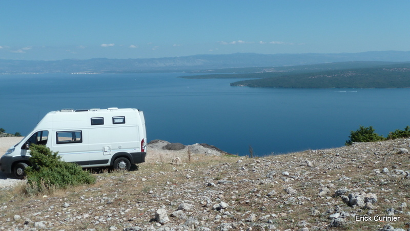 Nous pique-niquons face à l'île de Krk (prononcer Keurk) avec près de