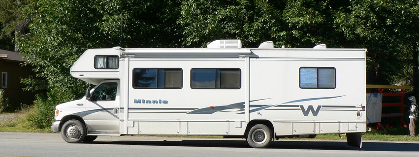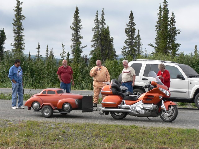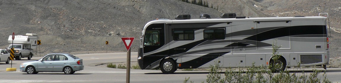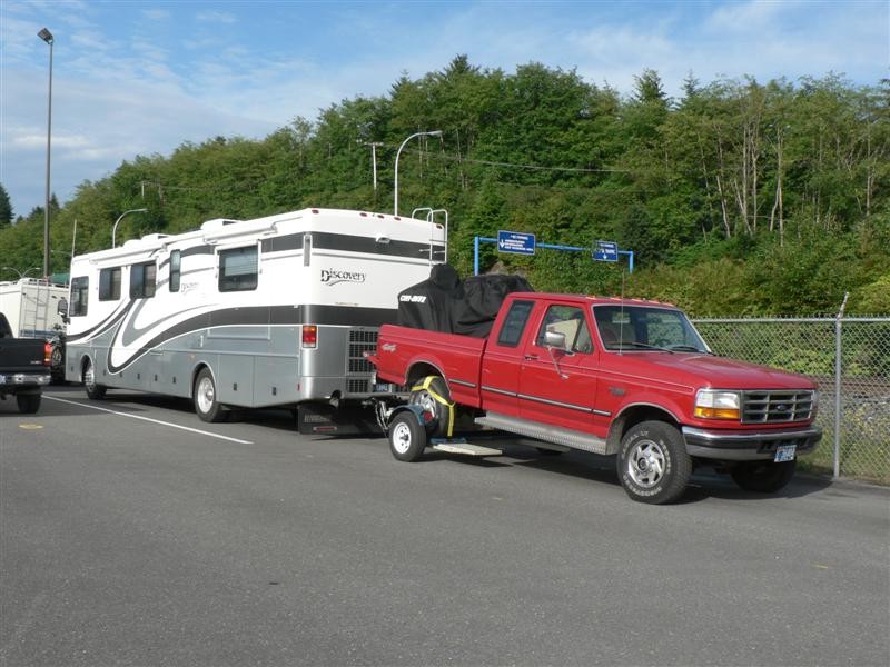 Ici quand on voyage en camping-car, on ne part pas sans tout son matériel (il y a un quad dans le coffre du truck remorqué par le camping-car)