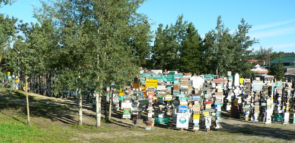 Watson Lake est célèbre pour sa forêt de panneaux indicatifs rapportés par des gens du monde entier ! Autre curiosité de la ville, le musée des toasters !!!!!