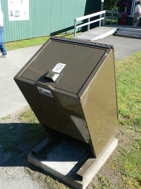 Une poubelle spéciale ne pouvant pas être ouverte par les ours. On en trouve partout en Alaska et au Canada