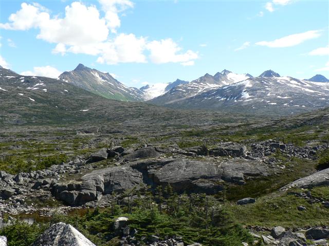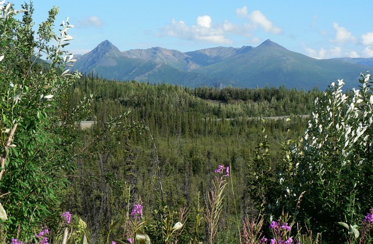 forêts de pluie. Arrivés à Haines Junction, c'est le beau massif du