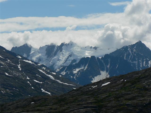 malheureusement encapuchonnés de nuages. Le lac Kluane est immense. Les