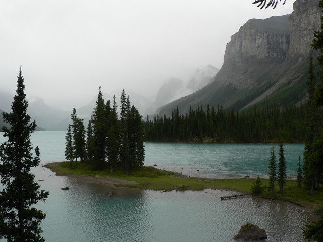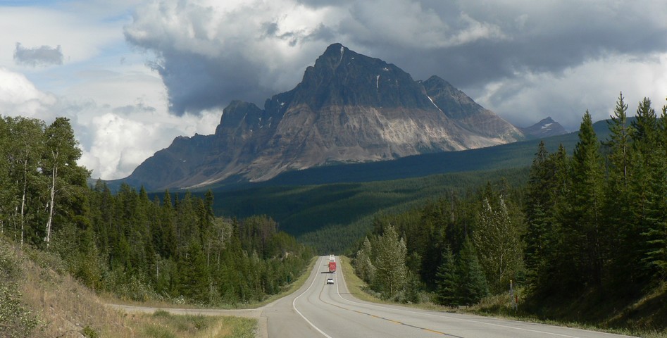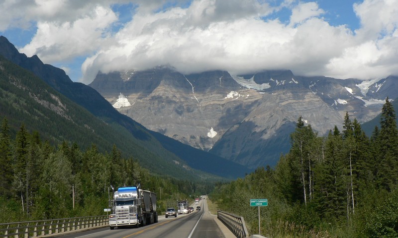 Ce matin, nous quittons donc Stewart (non sans rencontrer à nouveau un ours sur notre route ! Nous ne les comptons même plus !) en direction des Rocheuses. Le temps est très couvert et le relief a disparu. Heureusement qu'hier et avant hier il faisant grand beau !