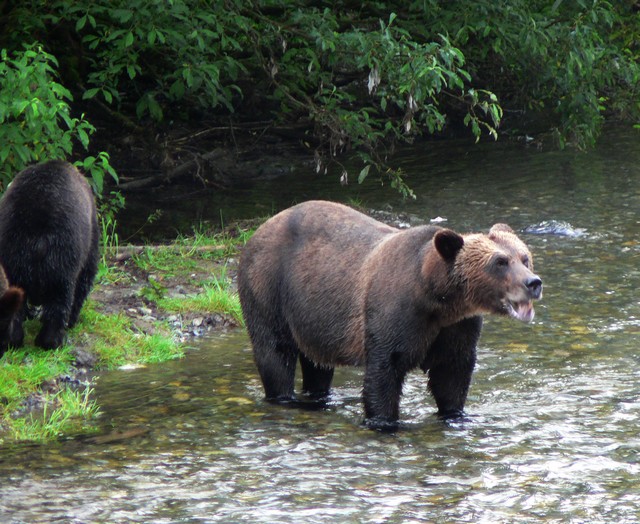 arrivons, un grizzli sort des berges de la forêt et part en chasse.