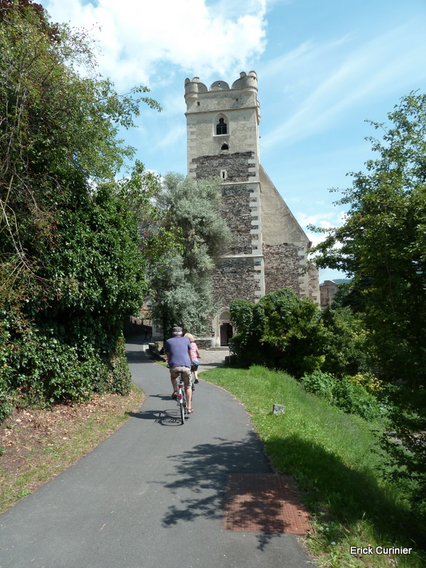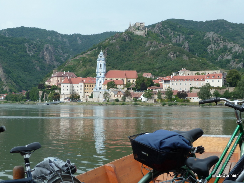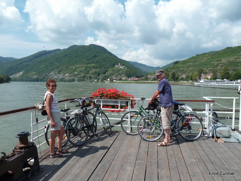 un joli petit ferry. Retour par Durnstein. La piste cyclable longe le