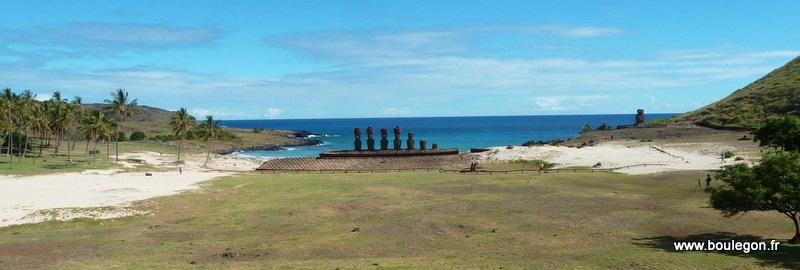 Site de Ahu Akivi, seul site où les Maois regardent la mer.