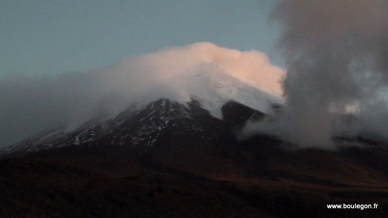voit pas vraiment. Idem pour le Cotopaxi. Nous dormons à ses pieds et