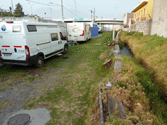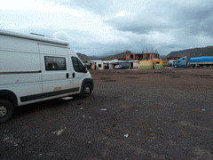Lucia : Bivouac utilitaire pas glamour du tout. Parking des camions à