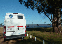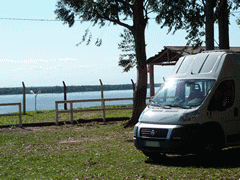 côté du camping municipal. Gratuit. Face au Rio Uruguay. Wifi chez le