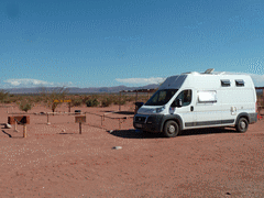 Valle de la Luna : camping du parc régional. Sanitaires. Electricité.