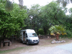 Camping del Rio. Sommaire mais confortable, au bord du rio Dulce. Wifi