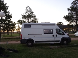 Mercedes Camping municipal. Fermé à notre arrivée, les innondations récentes ayant abimé les sanitaires. Mais nous pouvons y dormir. Emplacement agréable au bord su fleuve, sur une petite île. Gratuit car fermé. -33.24425, -58.0456 |