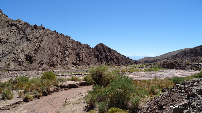Nous quittons Rodeo en suivant les gorges étroites du Rio Jachal.