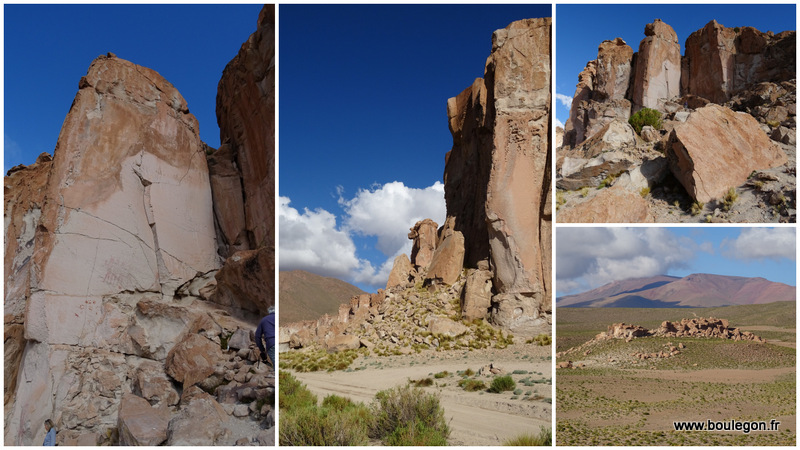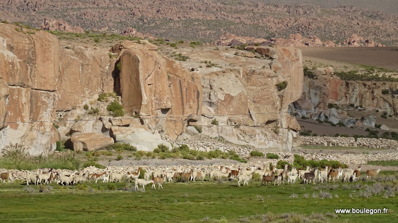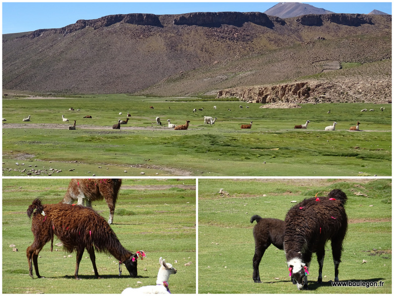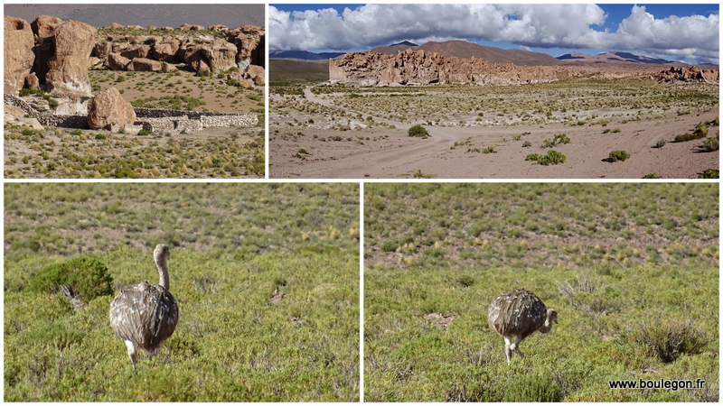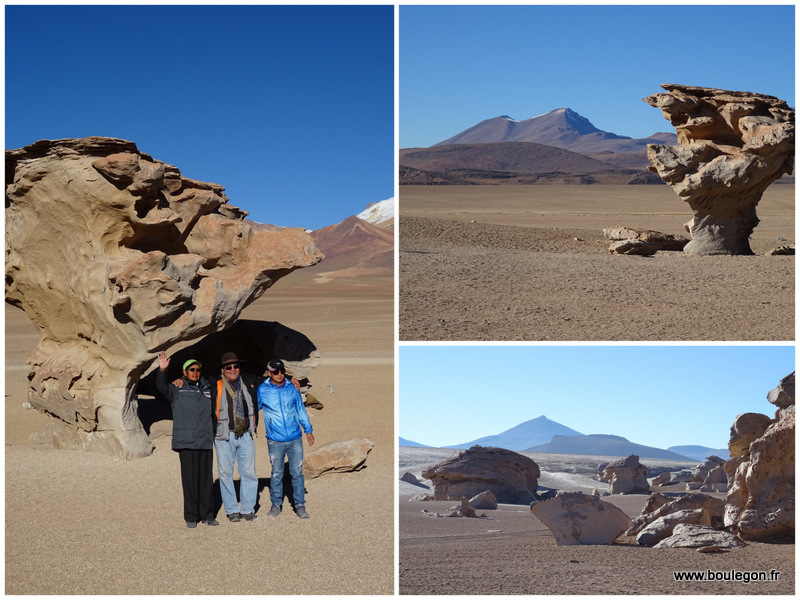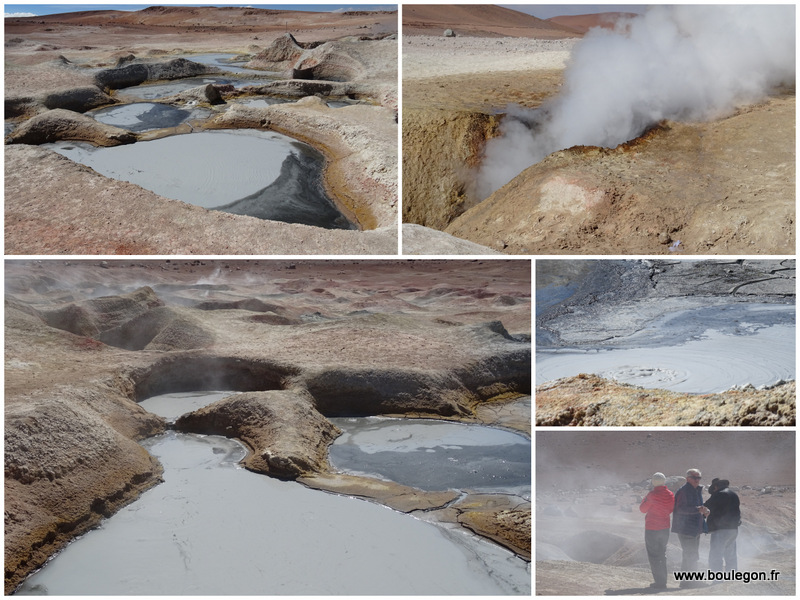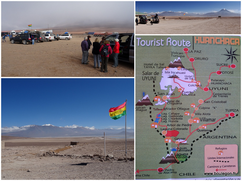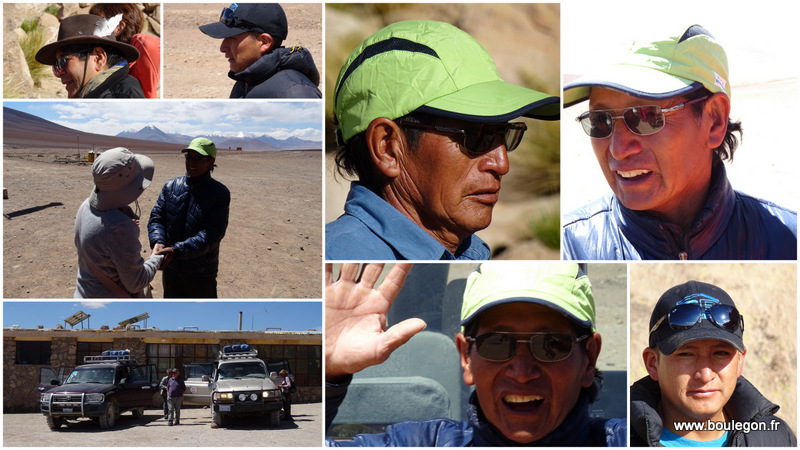 Raul vient nous chercher vers 9h. Les formalités douanières sont rapides à San Pedro de Atacama. Nous montons ensuite au Paso Hito Cajon, poste frontière​ bolivien. Un bon petit déjeuner nous y attend. Nous faisons connaissance avec notre guide Marcello qui est parfaitement francophone et avec nos deux chauffeurs Denisio et son fils Alvaro. Formalités rapides également aux douanes boliviennes. Tim nous avait dit que notre tour se ferait au maximum loin des foules. Ça s'est totalement vérifié aujourd'hui. Quel plaisir d'être seuls sur les sites. A trois par 4X4, c'est le grand confort. On peut s'arrêter quand on veut pour prendre des photos. Le guide est très intéressant et notre chauffeur nous explique également beaucoup de choses quand Marcello est dans l’autre voiture. Tout cela se présente bien.