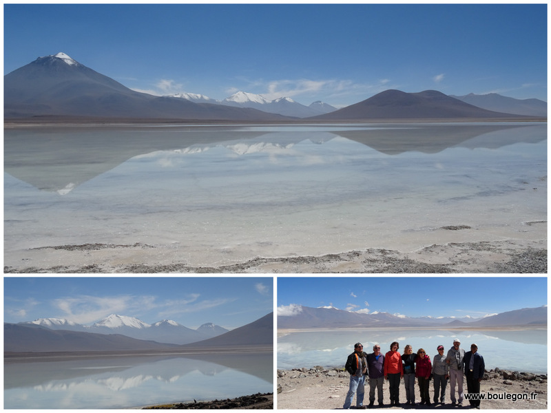 Dernière étape pour retourner à San Pedro de Atacama. Nous traversons encore des étendues sauvages et immenses, longeons la Lagune Capina qui est exploitée pour l'extraction du brome. Nous bouclons la boucle en arrivant à la lagune Chalviri. Repas près de la lagune Blanca que nous pouvons admirer d'un autre côté. Nous nous séparons ensuite de Denisio, Marcello et Alvaro qui ont tout fait pour que notre expédition soit une réussite, ce qui a été le cas. Merci à eux ainsi qu'à Tim et Raul.