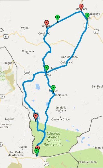 Tim nous a vraiment concocté une expédition correspondant à notre attente. Nous voulions un certain confort : nous étions 6 amis à partager 2 voitures, avions des hôtels très corrects avec chambres individuelles et salle de bain privative. Un guide francophone nous accompagnait (Tim étant indisponible à cette période). Nos chauffeurs qui connaissaient parfaitement les lieux se sont toujours débrouillés pour que nous soyons quasiment seuls sur les sites. Nous pouvions nous arrêter n'importe quand pour faire des photos. La nourriture a été excellente et variée. Bref, l'organisation a été parfaite. C'est l'agence bolivienne  Huanchaca  Expediciones qui nous a pris en charge dont le représentant à San Pedro est Raul.