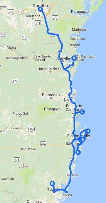 Nous quittons São Fransisco do Sul pour rejoindre Bombinhas, une