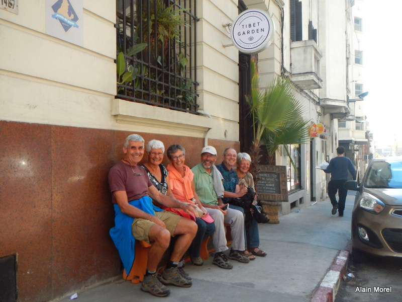 Ambiance toujours très joyeuse devant "notre" restaurant tibétain