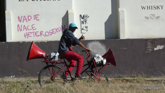 Ce cycliste, surpris par Annie, parcourt les rues en faisant de la