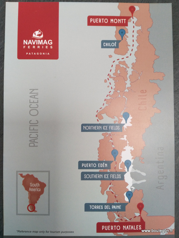 Le parcours de la croisière. Nous partons de Puerto Natales