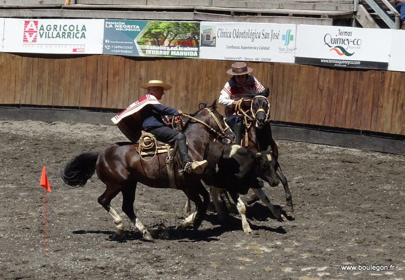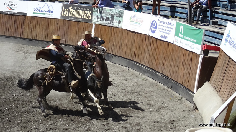 A Curarrehue, perdu au fond d'une vallée, nous trouvons l'arène où vont