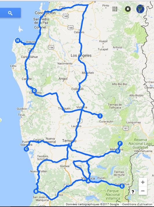 prenons la direction du Parc Conguillio où nous projetons de passer 3
