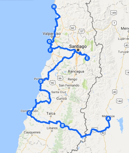 une soixantaine de kilomètres à l'est de Santiago. Route sans grand