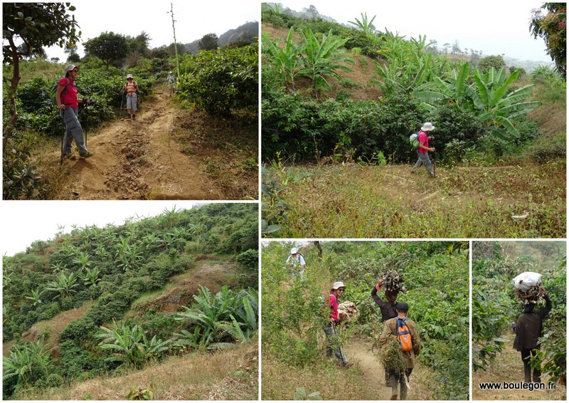 d'eucalyptus avant de rejoindre des plantations de caféiers, bananiers,